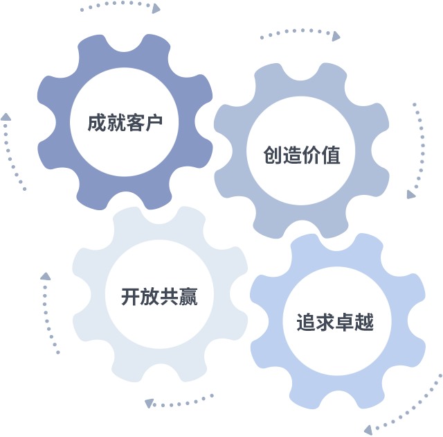 成就客户是一切决策的出发点,创造价值是衡量所有工作的标准,追求卓越是PA视讯做事做人的态度,开放共赢是PA视讯的格局也是最终的结果。价值观的齿轮环环相扣,推动着组织里的每个人不断向前。